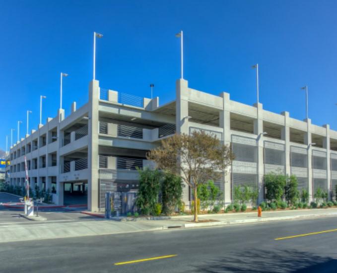This 178,444 square foot project was designed to accommodate 545 vehicles on 4 levels including 20 exterior spaces on-site at ground level. What makes this project unique is the use of a green screen system with live plant material on the most visible elevations of the structure.